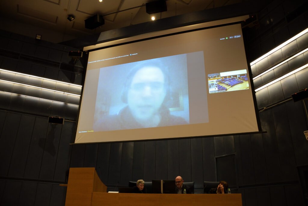 Η ημερίδα έκλεισε με την ομιλία της Ιουλίας Πεντάζου (3:39:27), επίκουρης καθηγήτριας του Τμήματος Πολιτισμού και Δημιουργικών Μέσων και Βιομηχανιών, του Παν. Θεσσαλίας. Παρουσίασε τη δομή, τη φιλοσοφία και το περιεχόμενο της ψηφιακής πλατφόρμας της έκθεσης «ΣΤΑ ΣΥΡΜΑΤΑ» που κατασκευάζεται από το Εργαστήριο Πολιτισμού και Ψηφιακών Μέσων που διευθύνει.